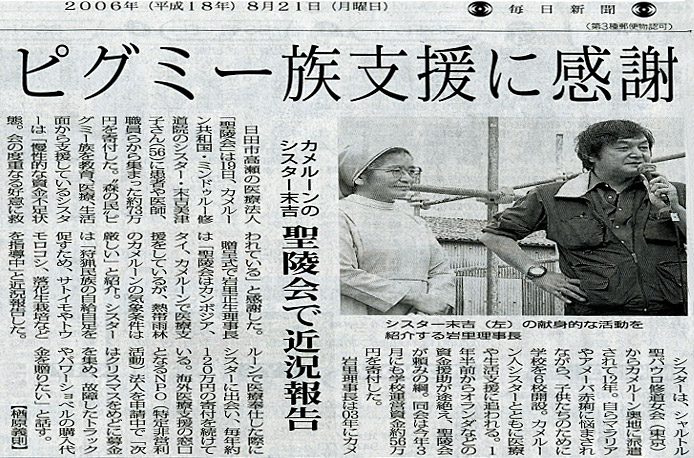 聖陵会では、これまでのカンボジアのアンコール小児病院・タイの山岳少数民族への医療などの支援活動・カメルーンの奥地ミンドゥールで森林伐採に苦しむピグミー族を支えるシスター末吉氏のサポートといった、海外ボランティア活動を展開してきました。そして、これらの活動の今後更なる発展を目指すべく、海外ボランティア事業を中心としたNPO法人を設立させることを決意し、この度2006年12月6日(水曜日)に無事NPO法人の認定を得ることが出来ました。 NPO法人 The Tree Of Minority Tribes |